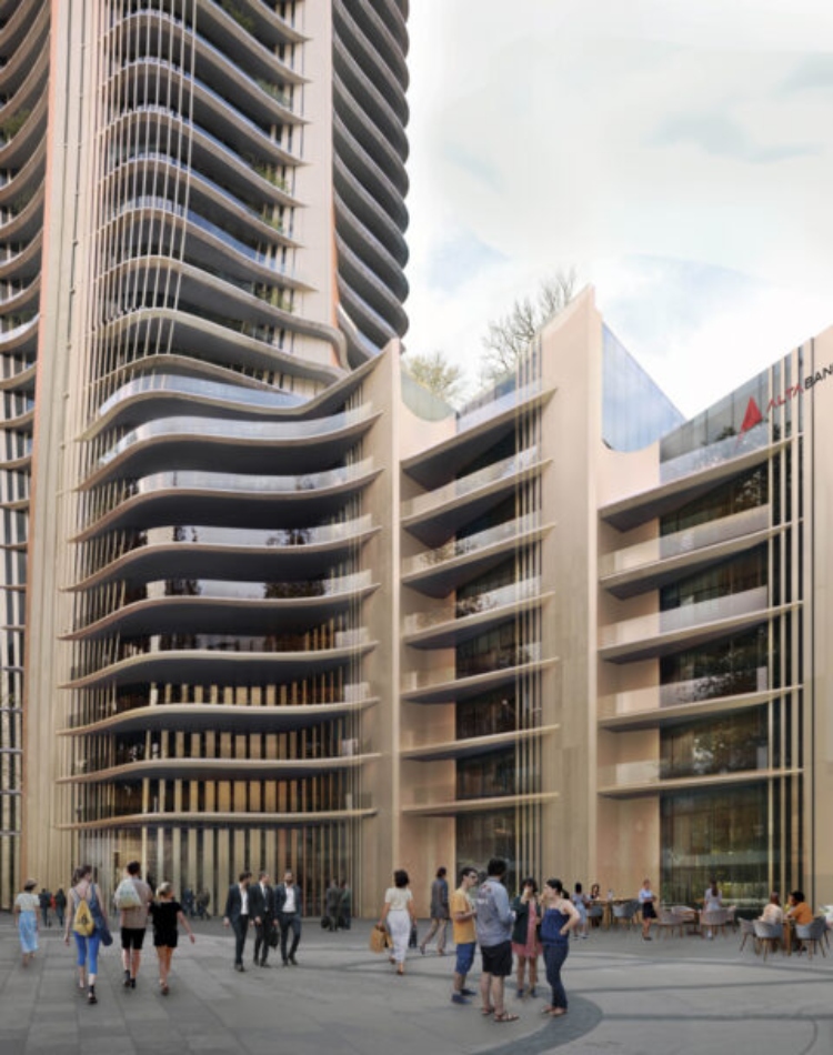Alta Tower je dizajnirana tako da se uklapa u urbano tkivo, a ne da ga preplavi. Njena baza — široki podijum — uključuje terase i zelene površine, savršene za neformalne sastanke ili spontani after-work chill.